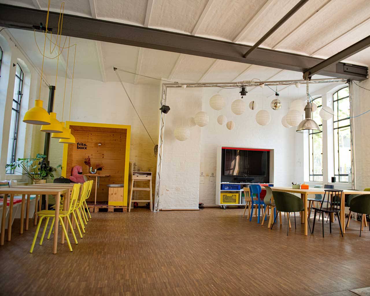 Dieser Veranstaltungsort zeichnet sich durch sein einzigartiges Ambiente und seine Flexibilität aus und bietet den idealen Rahmen für eine Vielzahl von Firmenveranstaltungen. Er befindet sich im Herzen eines lebendigen Stadtviertels und ist leicht zu erreichen, nur 14 km von den wichtigsten Sehenswürdigkeiten der Stadt entfernt. Das Gebäude erstreckt sich über drei Ebenen, von denen jede eine andere Atmosphäre bietet, von einem inspirierenden Arbeitsbereich bis hin zu entspannenden Bereichen für gesellige Momente. Die Einrichtungen umfassen vielseitige Räume, die mit moderner Technologie ausgestattet sind und sich perfekt für Workshops, Seminare oder Präsentationen eignen. Darüber hinaus ermöglicht ein charmanter Außenbereich die Organisation von Mittagessen oder Kaffeepausen im Freien in einer angenehmen Umgebung. Der aufmerksame Service des Personals stellt sicher, dass alle Wünsche erfüllt werden, was dazu beiträgt, jede Veranstaltung zu einem unvergesslichen Erlebnis zu machen. Mit einem Bekenntnis zur Nachhaltigkeit strebt dieser Veranstaltungsort an, eine umweltfreundliche Atmosphäre zu schaffen, während er hochwertige Catering-Services anbietet, die auf die Vorlieben jeder Gruppe abgestimmt sind. Ob für ein Seminar, ein Treffen oder eine Feier, dieser Raum wird all Ihre Erwartungen erfüllen.