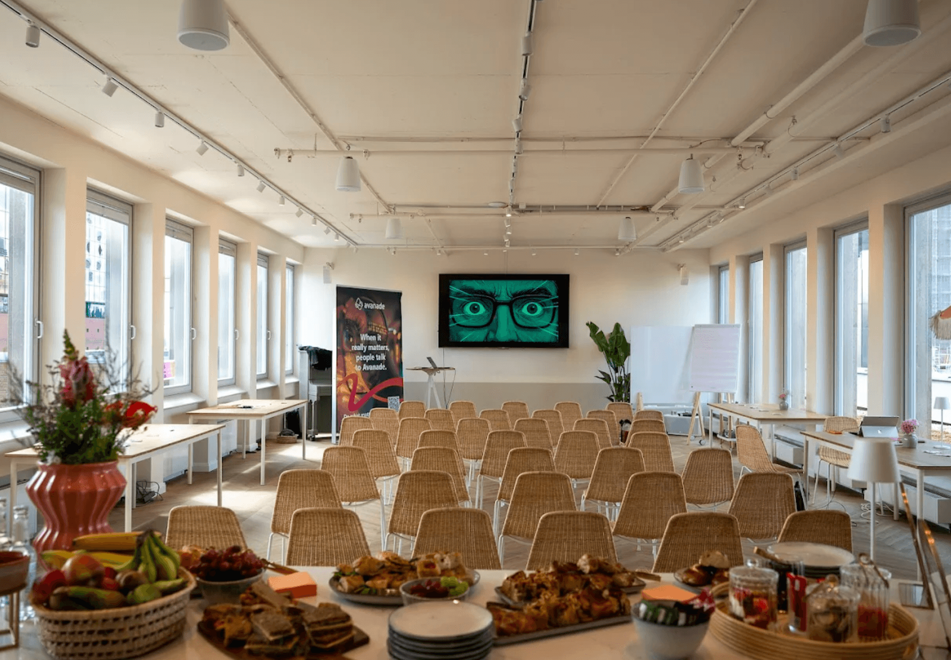 Entdecken Sie einen idealen Veranstaltungsort für Ihre Unternehmensereignisse, an dem Innovation und Komfort aufeinandertreffen. Mit einer Kapazität von bis zu 80 Teilnehmern in Theaterbestuhlung ist dieser Raum perfekt für Konferenzen, Seminare oder Brainstorming-Sitzungen. Sie werden auch einen inspirierenden Arbeitsplatz genießen, ausgestattet mit einem 42-Zoll-Bildschirm, um die Kreativität Ihres Teams zu fördern. Die voll ausgestattete Küche mit 80 Quadratmetern, mit ihren Barhockern und dem 60-Zoll-Bildschirm, sorgt dafür, dass alle Ihre Gäste sowohl kulinarisch als auch technisch zufrieden sind. Sie haben Zugang zu modernem Equipment, wie Metaplanwänden, Flipcharts und einem Projektor, um den Erfolg Ihrer Präsentationen sicherzustellen. Indem Sie diesen Raum wählen, buchen Sie nicht nur einen Besprechungsraum, sondern ein bereicherndes Erlebnis zu wettbewerbsfähigen Preisen. Zögern Sie nicht, uns zu kontaktieren, um herauszufinden, wie wir Ihre spezifischen Bedürfnisse erfüllen können.